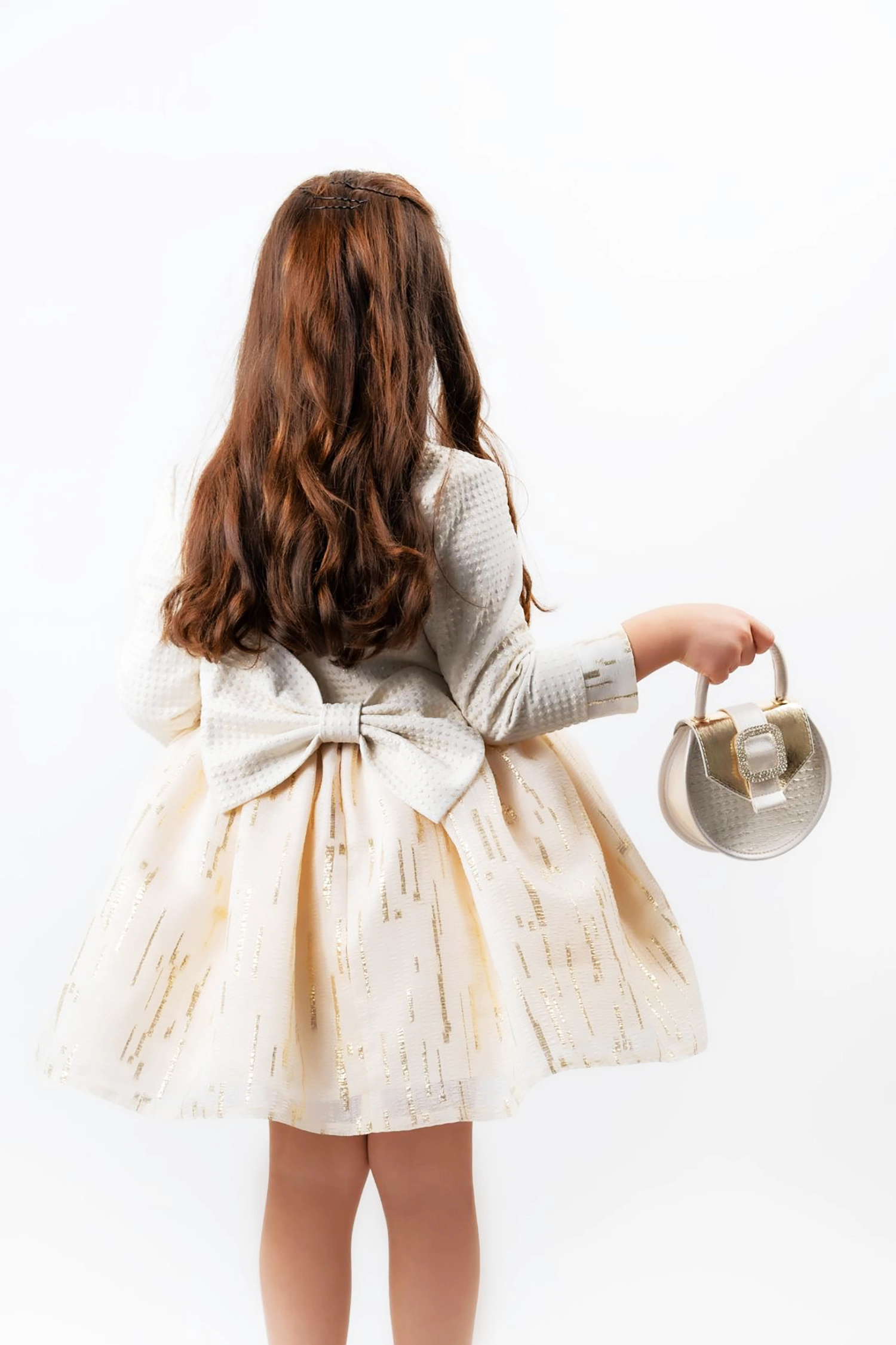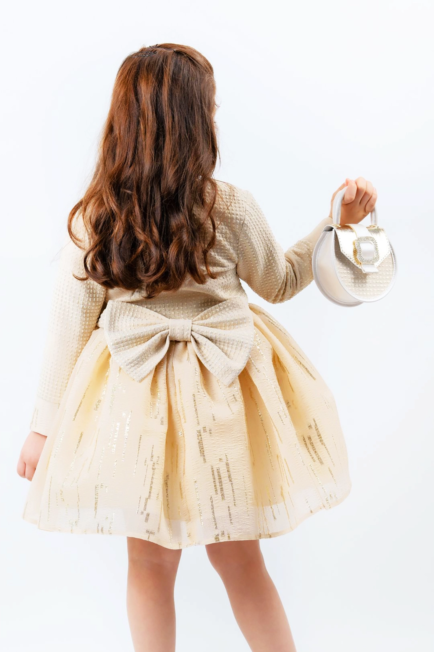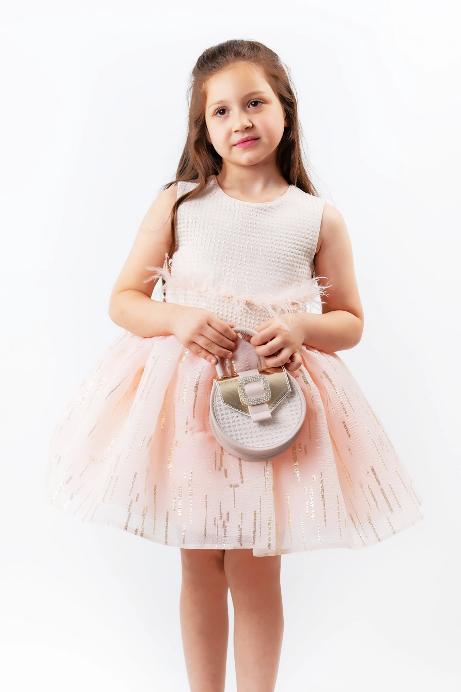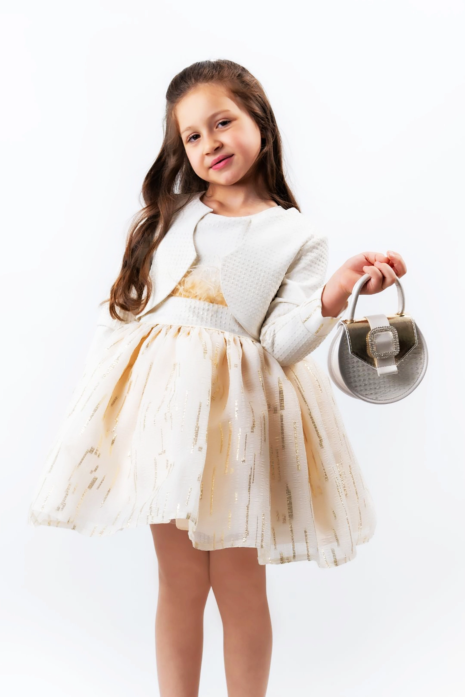 Make a statement this Eid with this beautiful dress! Crafted from organza fabric with gold reed threads, with a beautiful brocade jacquard jacket and a soft feather waistband, this dress is the perfect choice for a statement-making look.