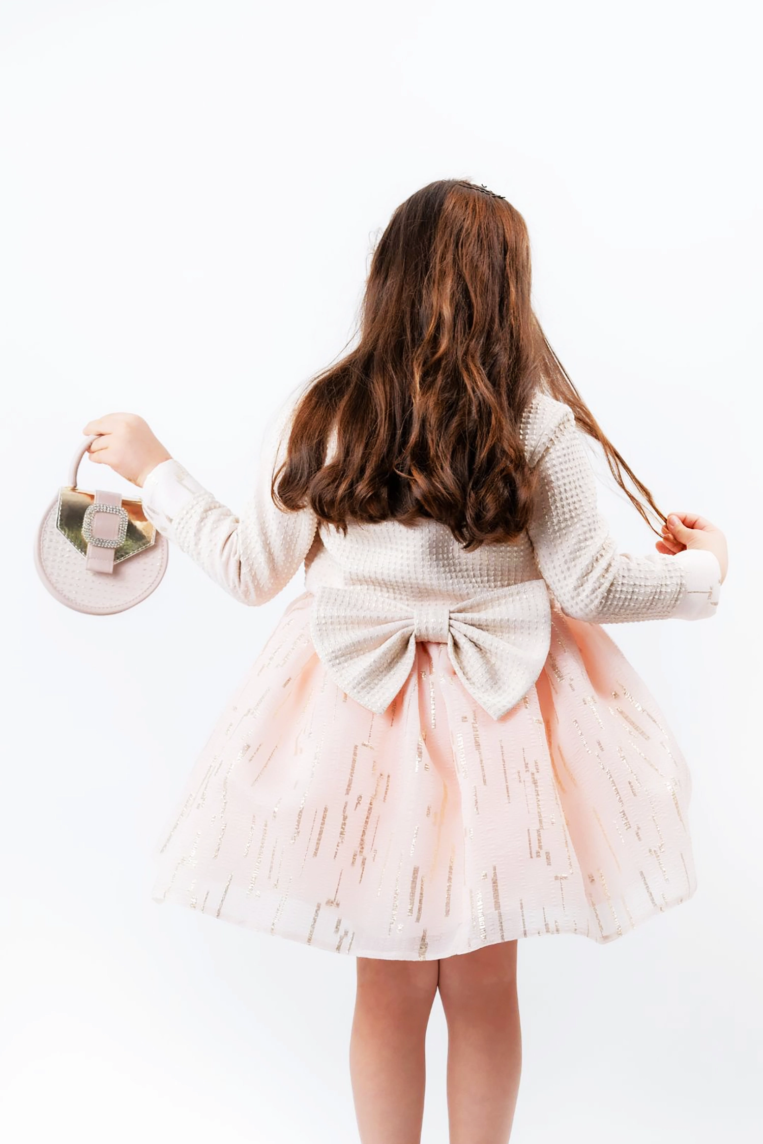 Make a grand statement this Eid with Cherry blossom dress that exudes sophistication and elegance. This masterpiece is crafted from exquisite organza fabric, intricately woven with gold reed threads that add a touch of luxury. The dress features a beautifully designed brocade jacquard jacket that enhances its grandeur, while the soft feather waistband provides a delicate and refined finishing touch. Perfect for making a memorable impression, this Cherry blossom dress offers a blend of intricate detailing and high-fashion elements, ensuring you look spectacular for the occasion.