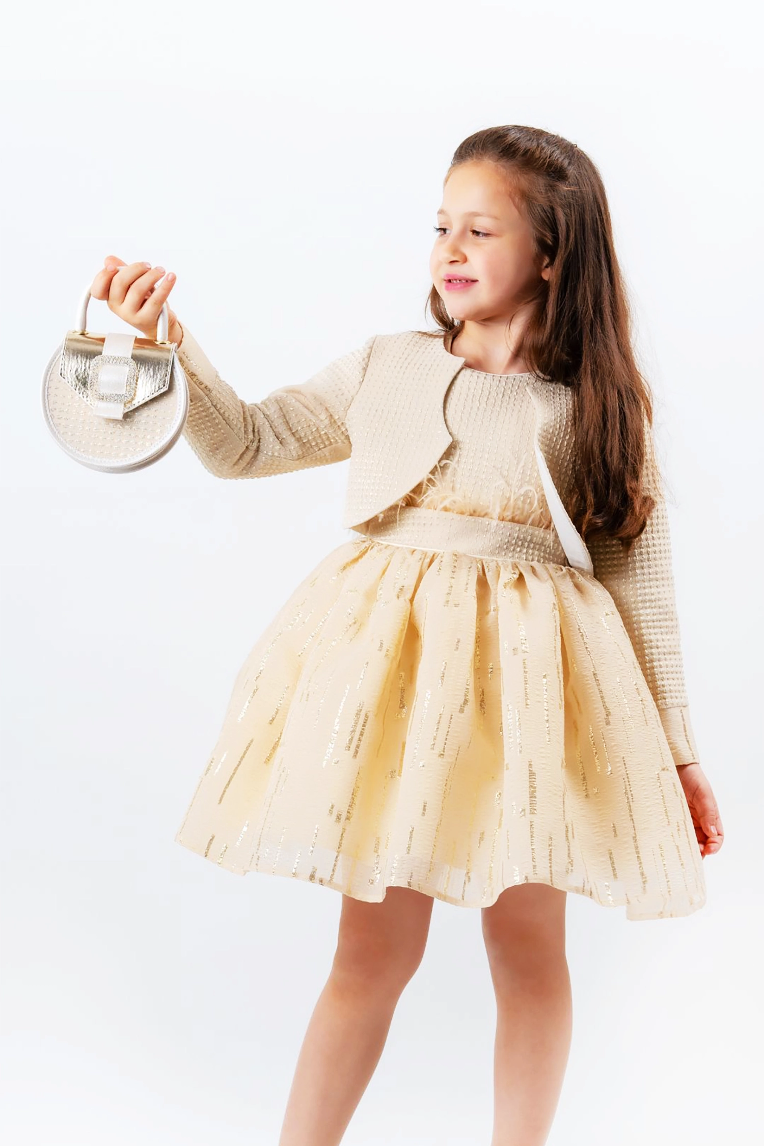Winter dress with bolero made of jacquard and knitted jacquard fabric