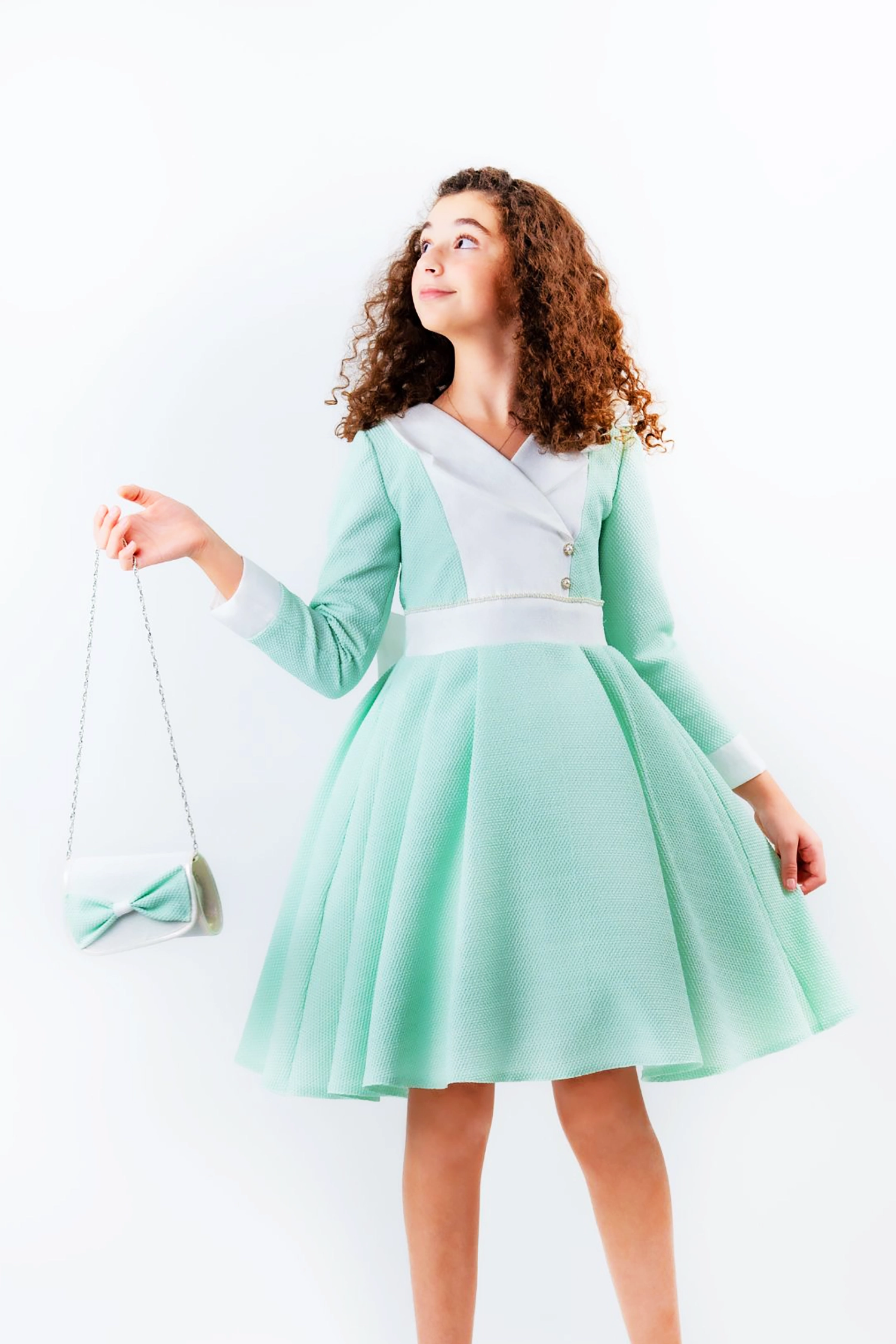 Winter dress with bolero made of painted jacquard and knitted jacquard