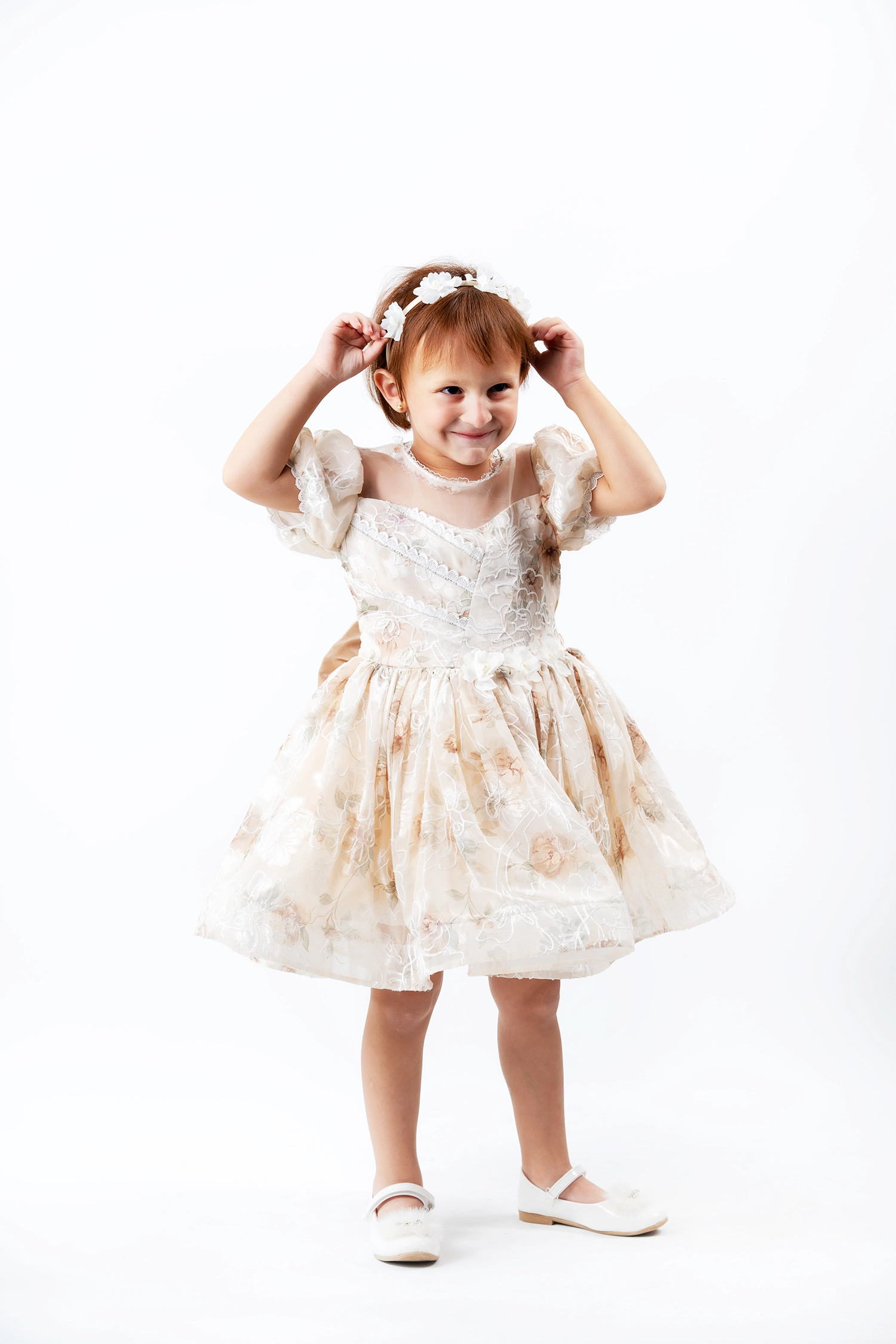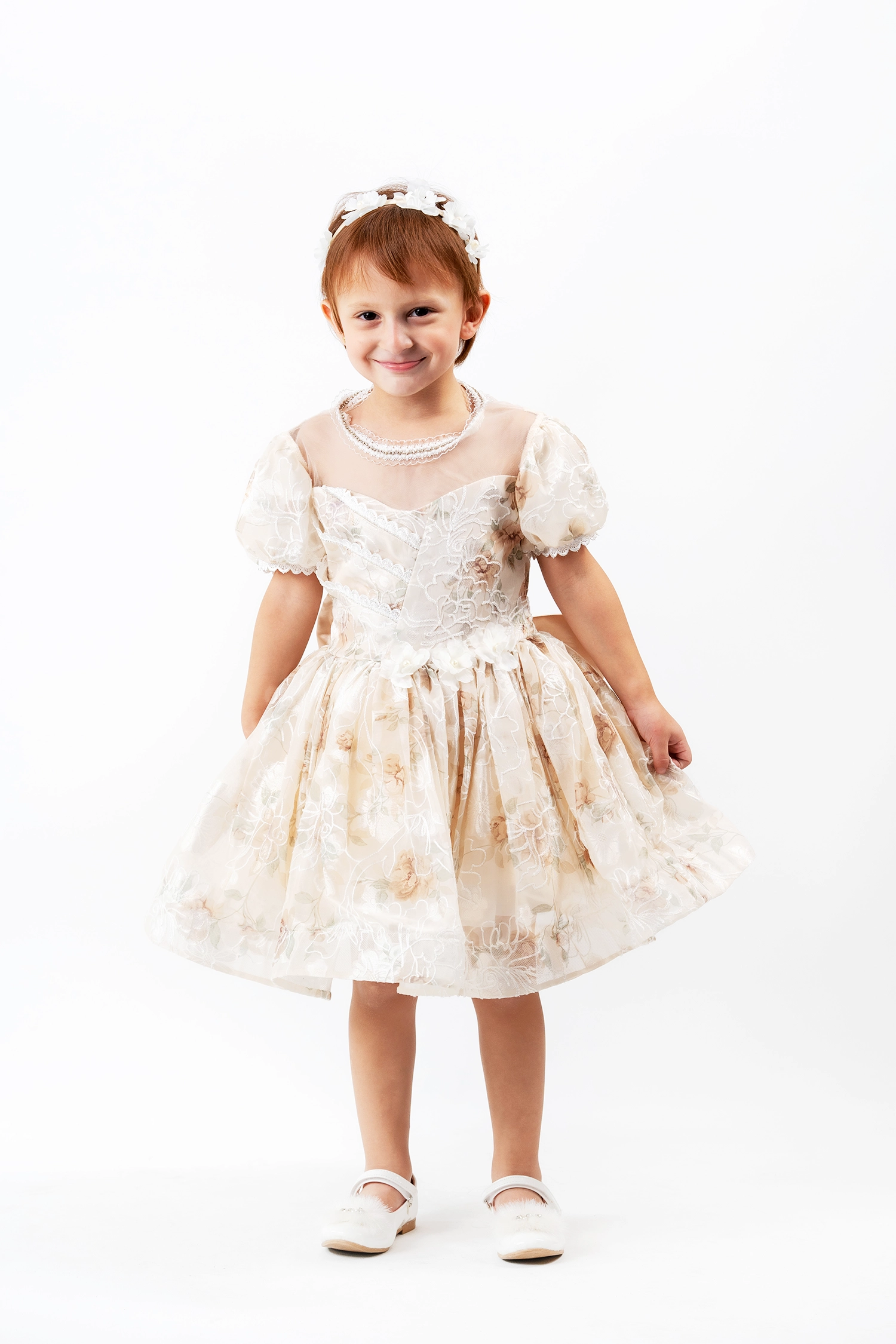 Step into elegance with the glamorous Princess of Flowers dress, designed to add a touch of sophistication to any holiday or special occasion. Crafted from a beautiful blend of broderie anglaise and organza fabrics, this Princess of Flowers dress is intricately embroidered with tulle and satin, showcasing a stunning combination of textures. Its innovative design and meticulous detailing ensure you stand out at every event, making it a perfect choice for any celebration.