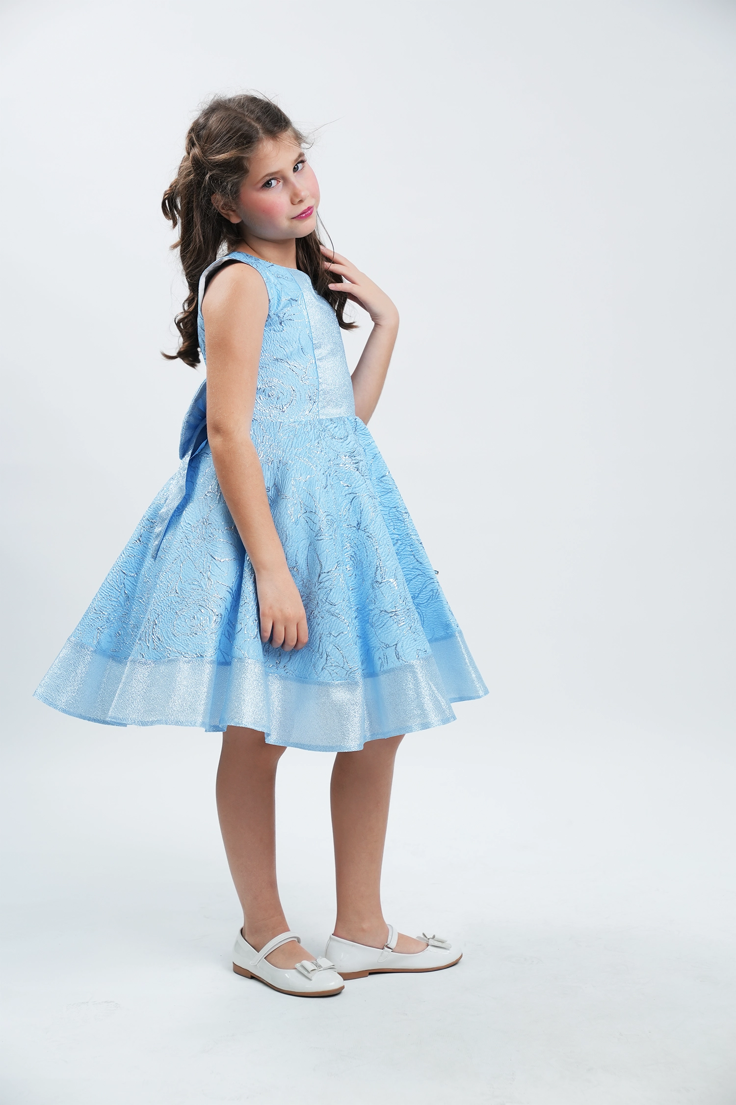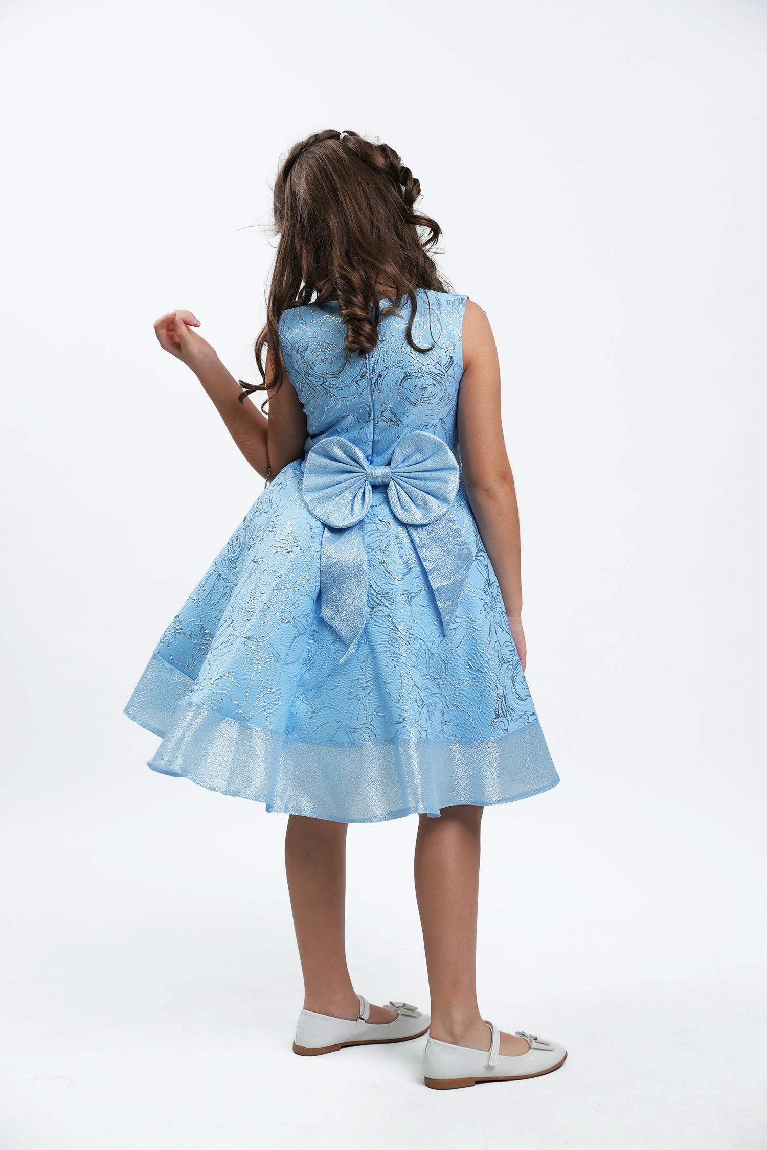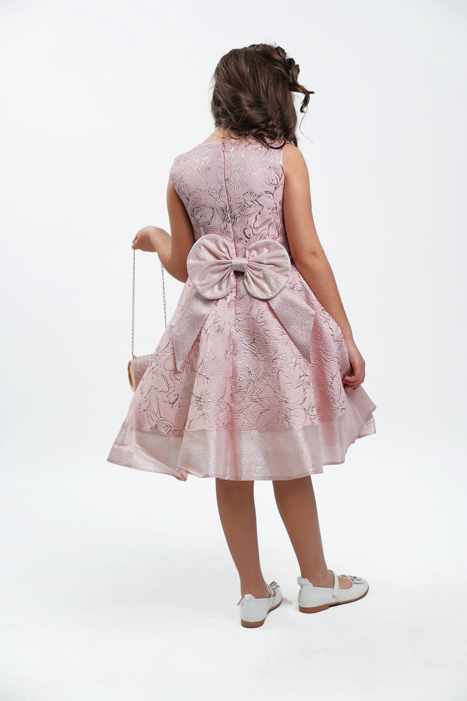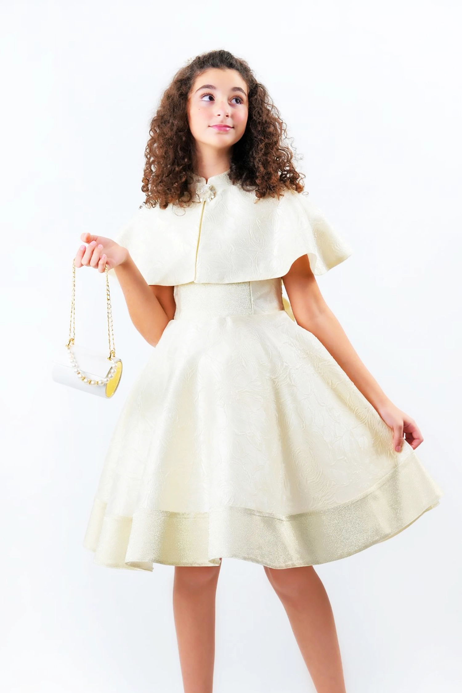 This glittery jacquard dress is sure to turn heads at any party or festival! Inspired by British princesses, it’s made from luxurious jacquard fabrics with soft graphics that shine through.