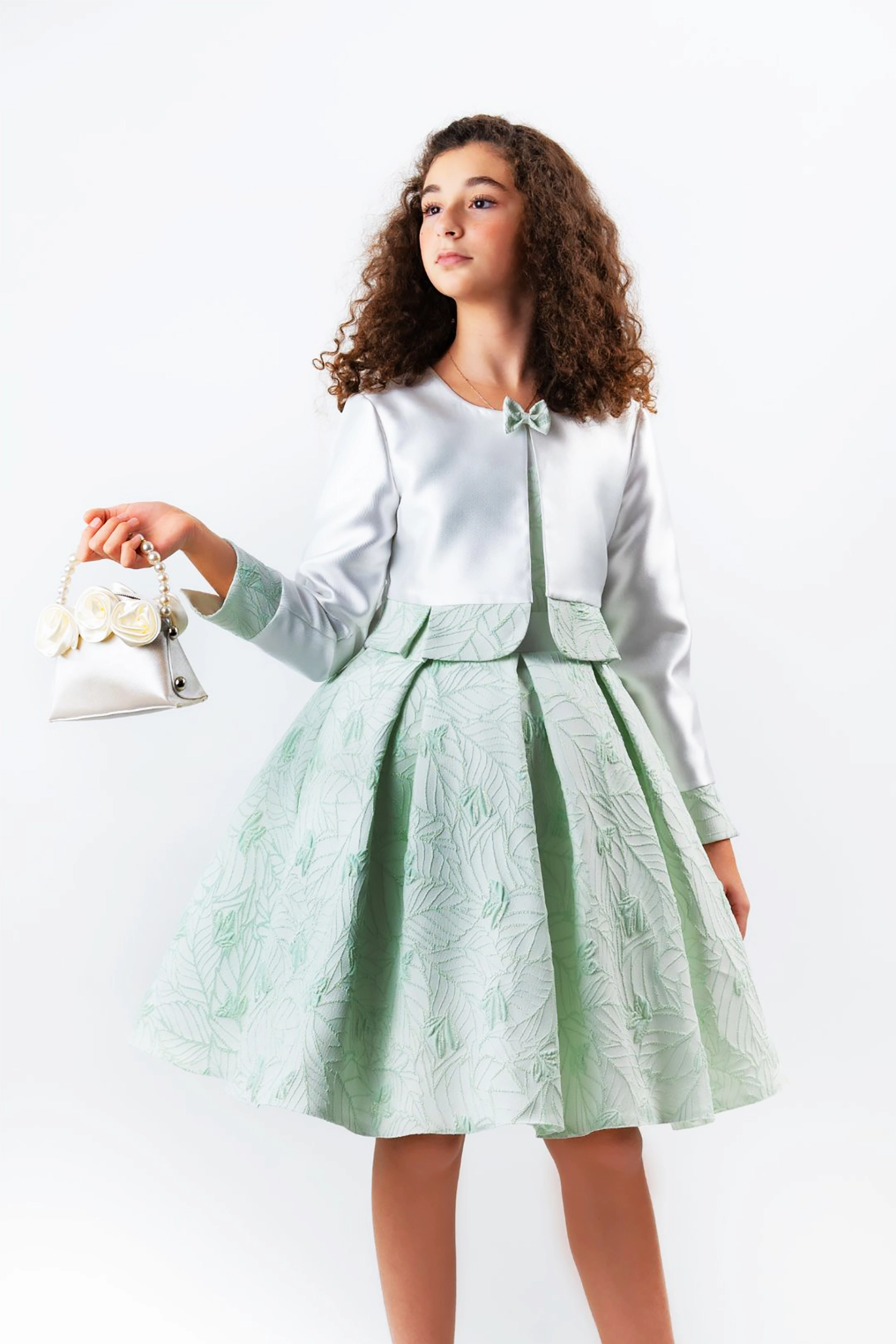 Winter dress with bolero made of painted jacquard and knitted jacquard
